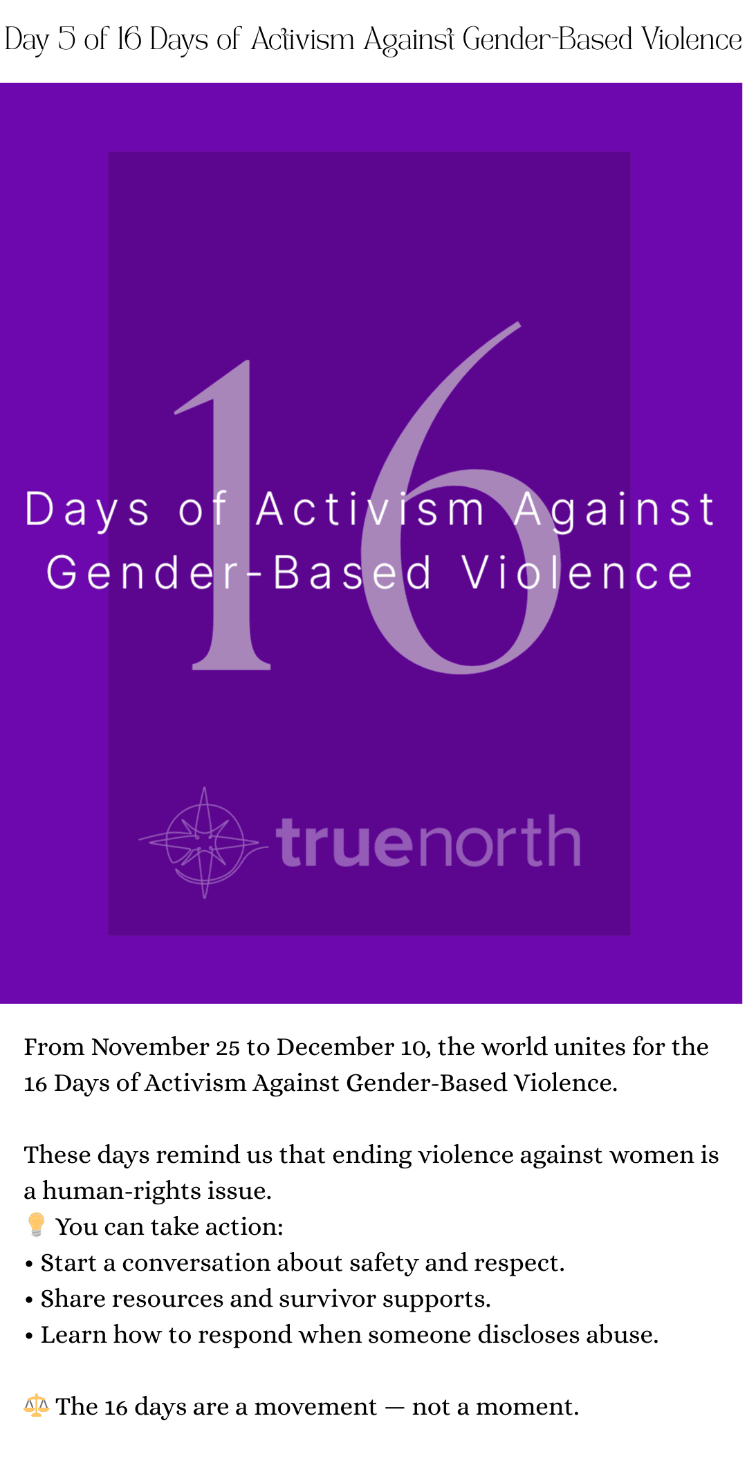 True North 16 Days of Activism Against Gender-Based Violence Social Media