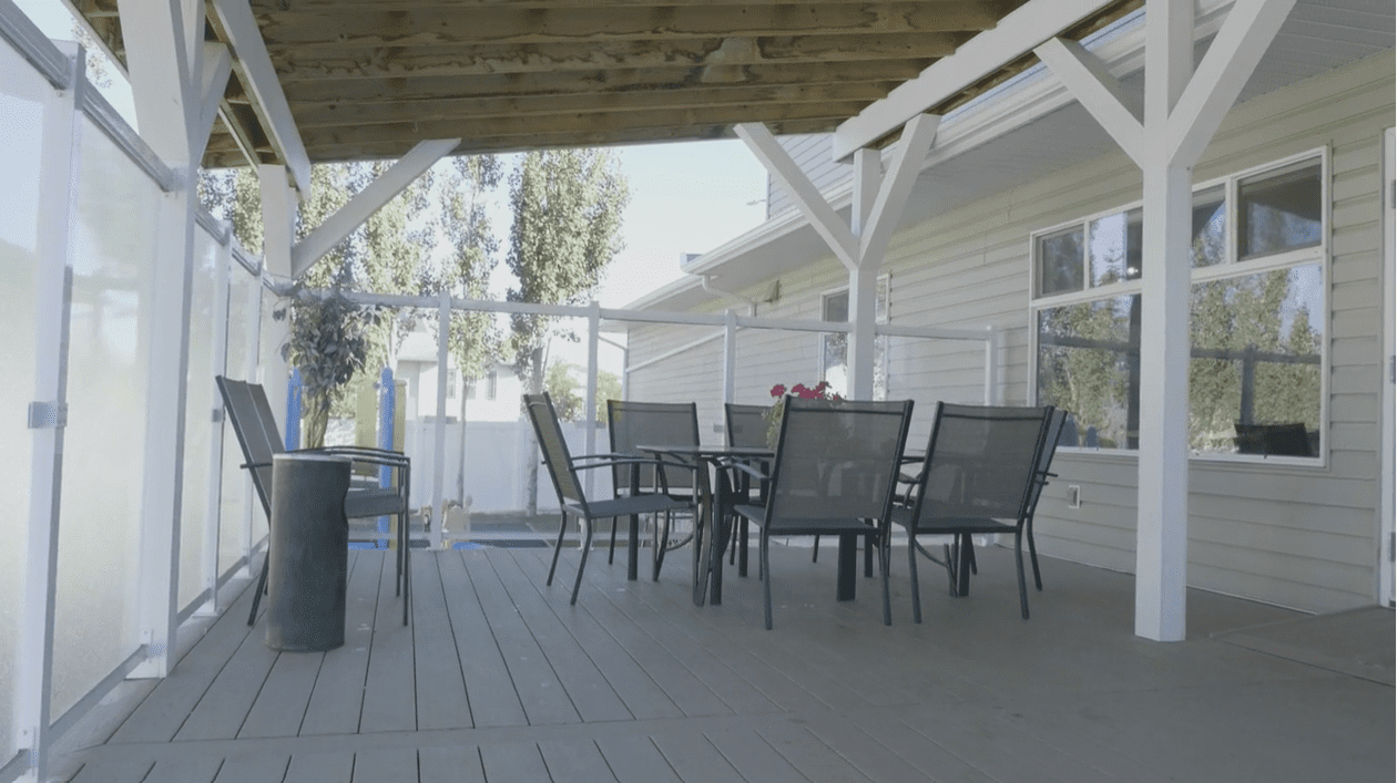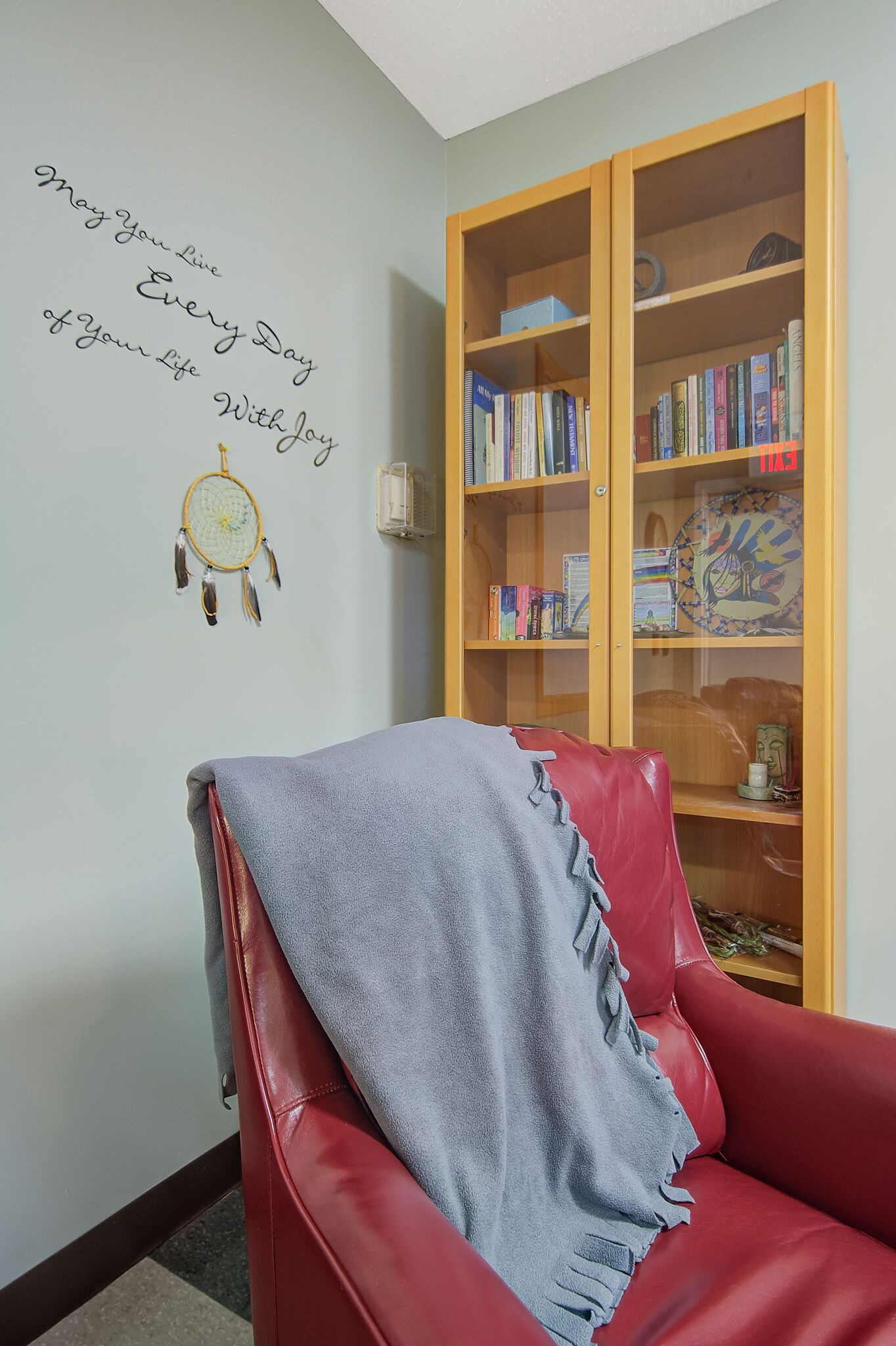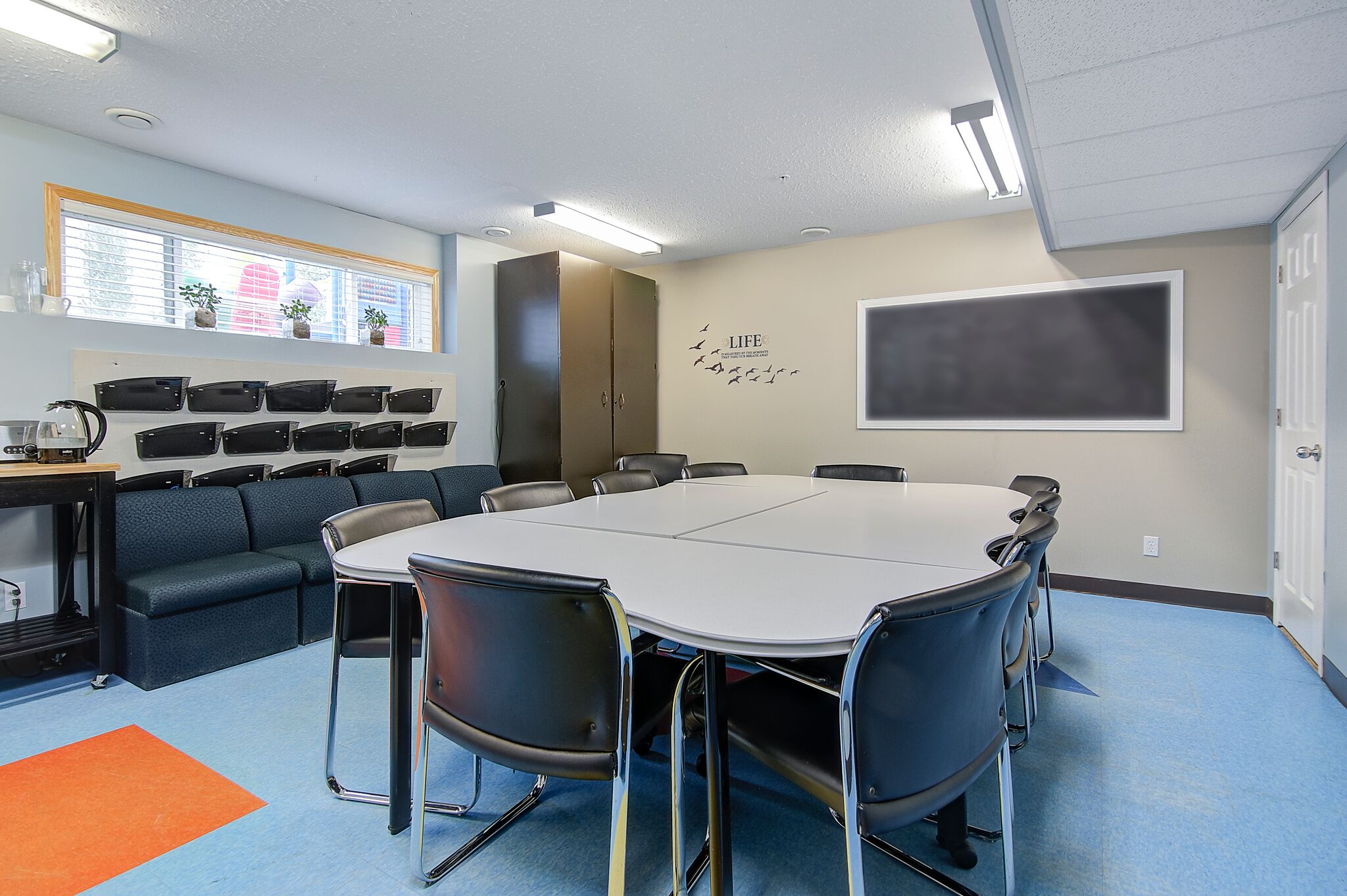 The kitchen, living room, and yard are communal spaces. Two counselling spaces are also available within the facility for personal space and reflection.