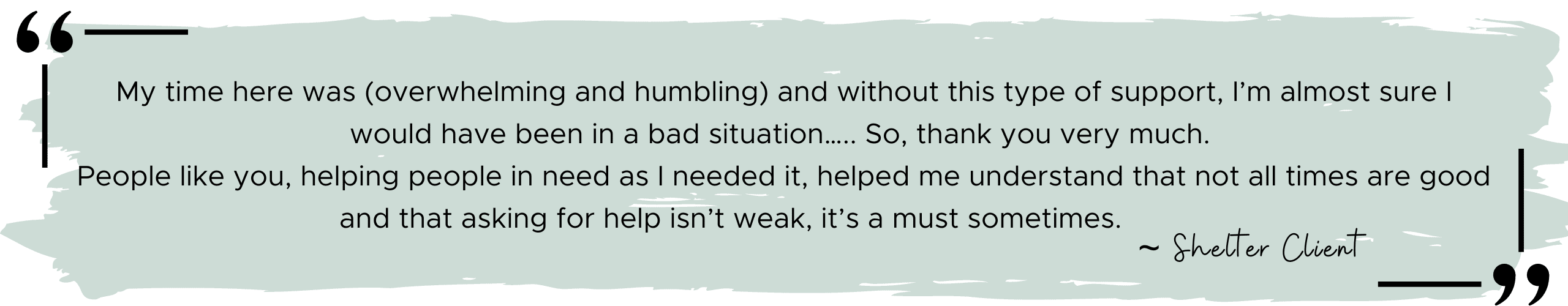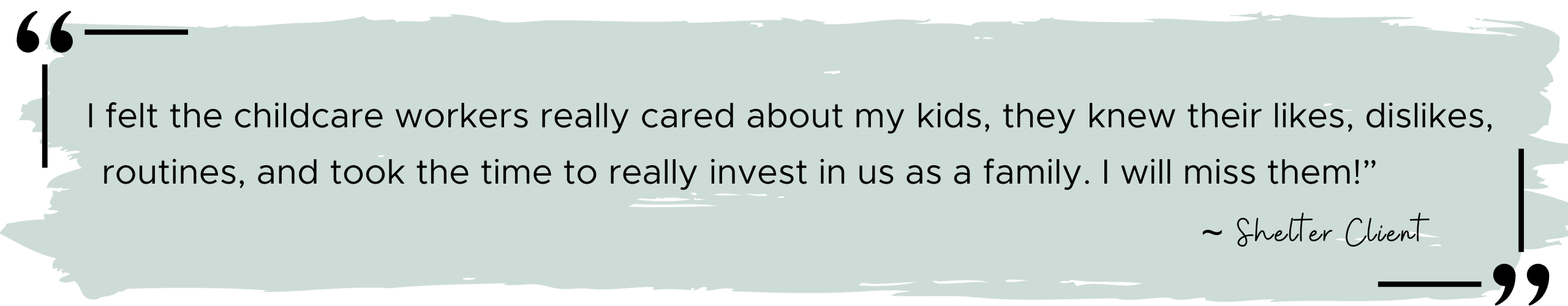 - resources and referrals to ongoing community support, so families can continue to thrive even after they have left the shelter.