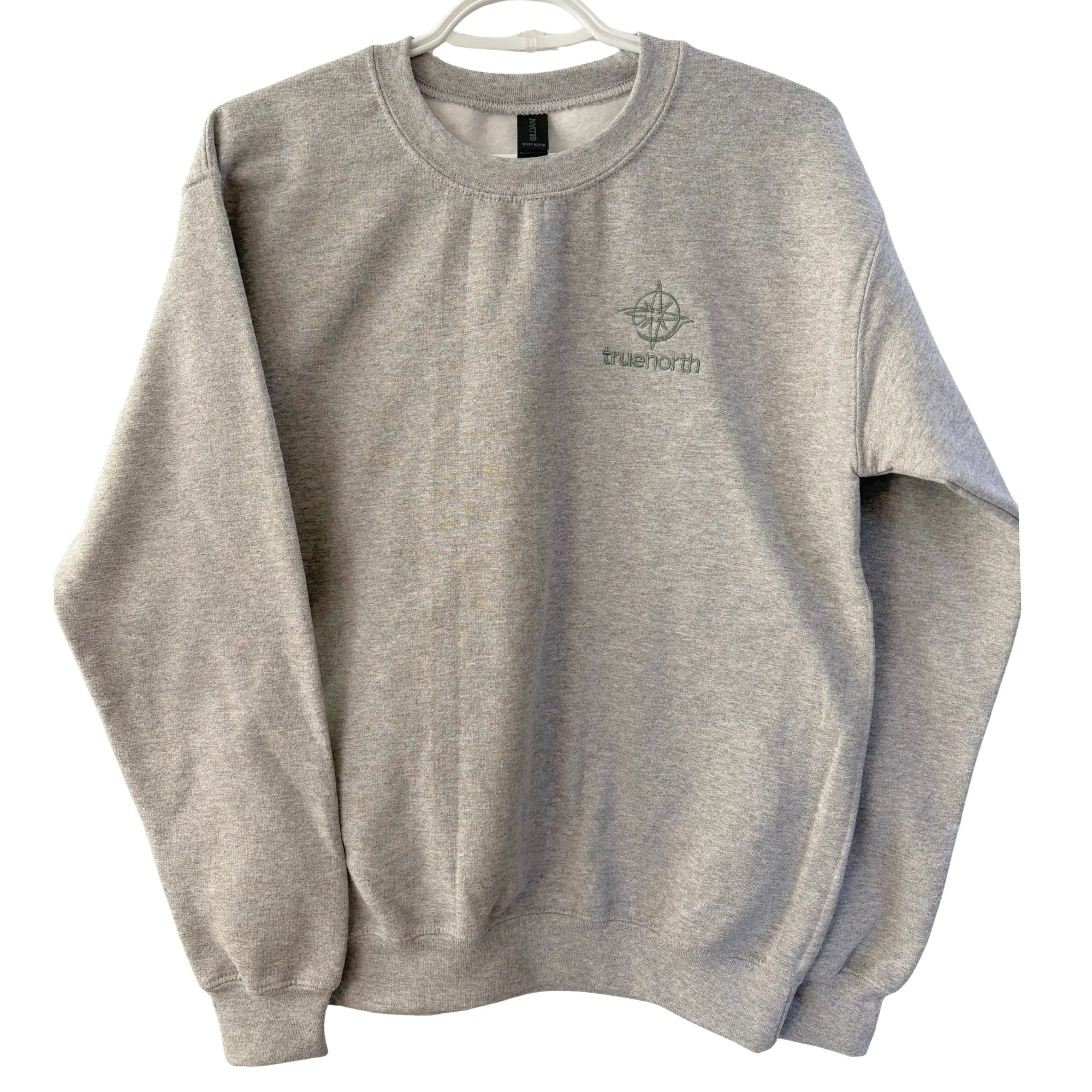 Grey Crewneck Sweater, Sage Logo