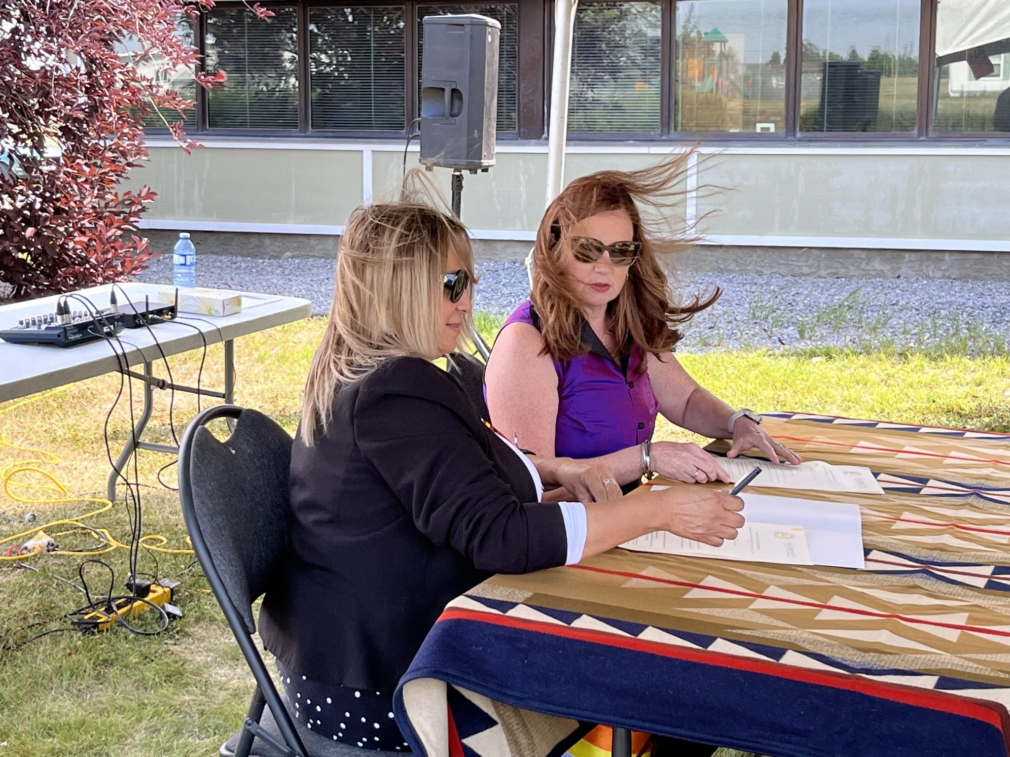 True North’s Interim Executive Director, Carol Manson McLeod (right), signs the MOU with Siksika Nation Councillor Marsha Wolf Collar (left).