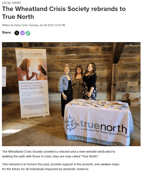 True North has been a trusted resource in the Strathmore, Alberta area for over 30 years. Your support bolsters intervention initiatives that help prevent the onset of domestic abuse, interrupt the cycle of violence and support survivors along their journey toward health and independence.